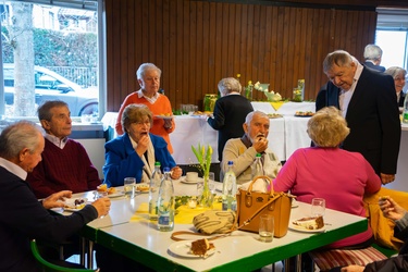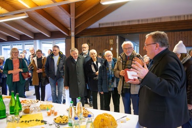 Nach umfangreichem Dank an alle Beteiligten und einer Ermutigung zum Miteinander lud der Jubilar zum geselligem Beisammensein in den Pfarrsaal ein, wo ein rühriges Frauenteam um Maria Thieme eine ganze Tafel kulinarischer Geschenke vorbereitet hatte.