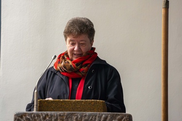 Hannelore Hohn sprach in ihrer Abschiedsansprache als erstes die zahlreichen Ministrantinnen und Ministranten an: Neben rund 20 aktiven Minis war auch eine große Anzahl Ehemaliger vertreten, für die sichtlich gerührte Hannelore Hohn war das „ein ganz großes Geschenk!“ Nach so langer Zeit falle ihr der Abschied nicht ganz leicht, doch mache sie den Weg gerne frei – in der Hoffnung, dass der Dienst ihrem Nachfolger genauso Freude macht und im Vertrauen auf Gottes Plan. Ausdrücklich dankte sie den vielen Menschen, „mit denen ich zusammengearbeitet habe und die mich mit ihrer Hilfe bereichert haben“, Harald Fritsch für „die große Freiheit, mit der ich meinen Dienst ausüben durfte“ und Pfarrer Meyer „für alles freundschaftliche Miteinander“.