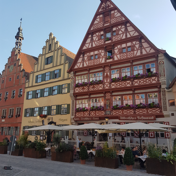 Die ehemalige Freie Reichsstadt Dinkelsbühl, ist geprägt von ihrem unversehrten historischen Stadtbild – „Schönste Altstadt Deutschlands“ (Focus) -; hier ist alles noch „original“. Ein geführter Stadtbummel wird der Gruppe dies erlebbar machen; Höhepunkt ist dabei das Georgs-Münster, das zu den großen Architekturleistungen der süddeutschen Spätgotik gehört.