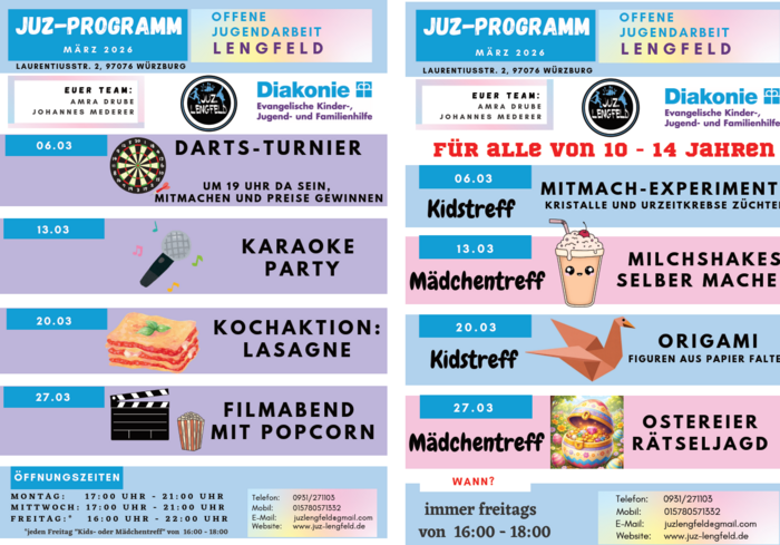 JUZ-Programm und KidsTreff/MädchenTreff (10-14 J.) mit: Amra Drube und Johannes Mederer